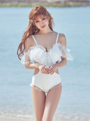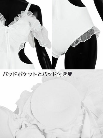 甘くてガーリーデザイン♡ 【水着】オフショルチュール バストレースアップ モノキニ ビキニ
