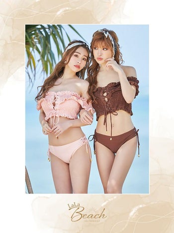 安くてクシービキニ♡ 【水着】オフショルフリルトップビキニ
