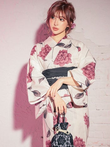 5. 【浴衣】妖艶 アイボリー×アンティークフラワー柄ゆかた3点SET [浴衣+兵児帯+下駄]