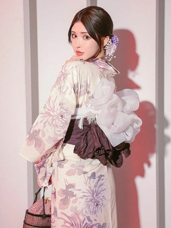 妖艶 アイボリー生成り地 乱菊柄 ゆかた3点SET
