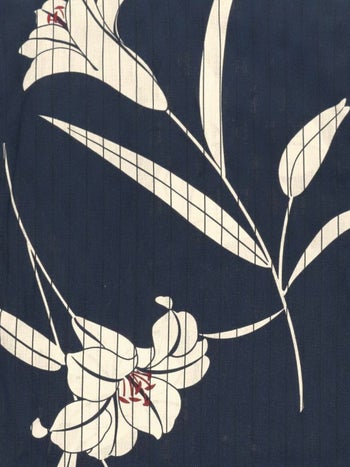 4. 【浴衣】紺地 白百合柄 ゆかた3点SET [浴衣+平帯or作り帯+下駄]