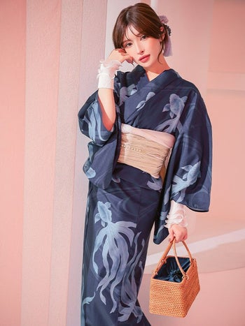浴衣 浴衣 > SALE【浴衣】紺地 金魚柄 流水 ゆかた3点SETのイメージ画像7