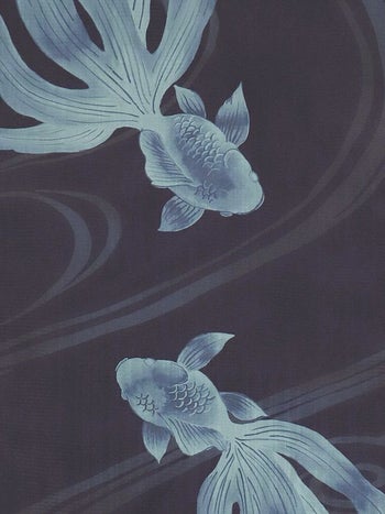落ちついたトーンの紺色に涼やかに泳ぐ金魚が