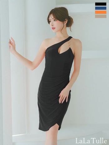 4. 【Veautt/ヴュート】サークルチェーン バストカット ワンショルダー ワンカラー ウエストギャザー セクシー 膝丈ドレス (VT022511)