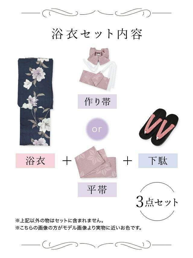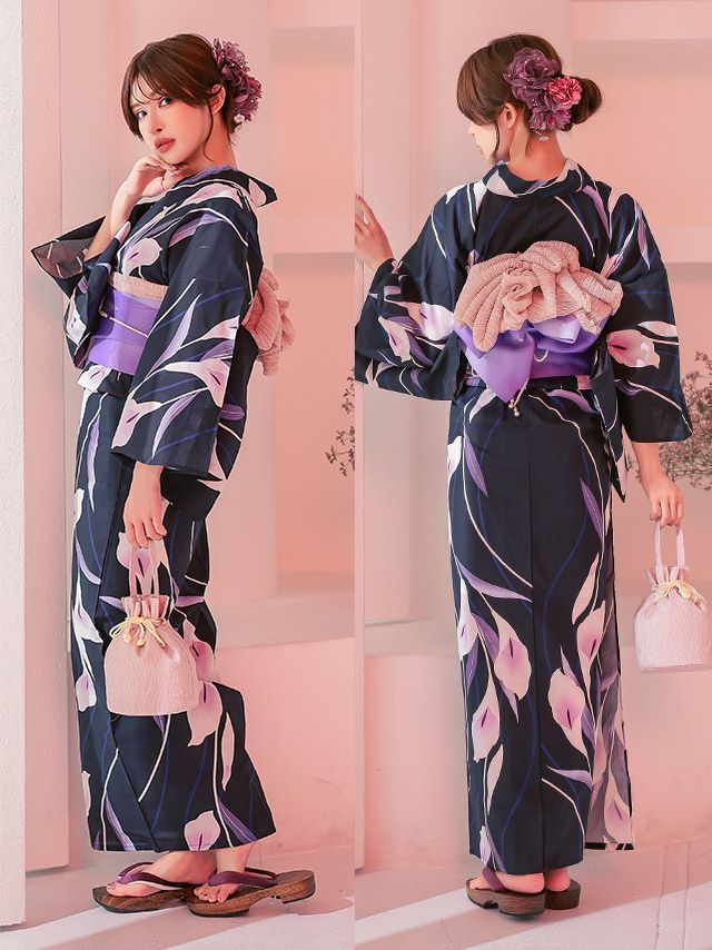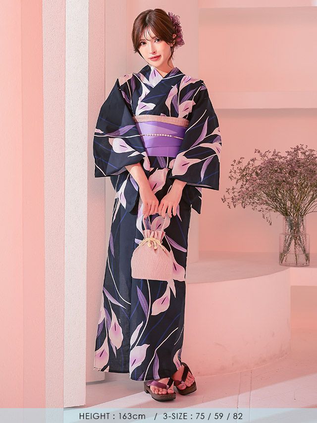 他の画像を見る ワンランク上の大人女性へ♪ 【浴衣】水彩フラワー 百合の花 紺地 妖艶 ゆかた3点SET [浴衣+平帯or作り帯+下駄] 即日発送 ¥ 17,600 税込 〜 ¥ 税込 詳細を見る お気に入りに登録する