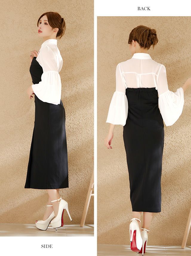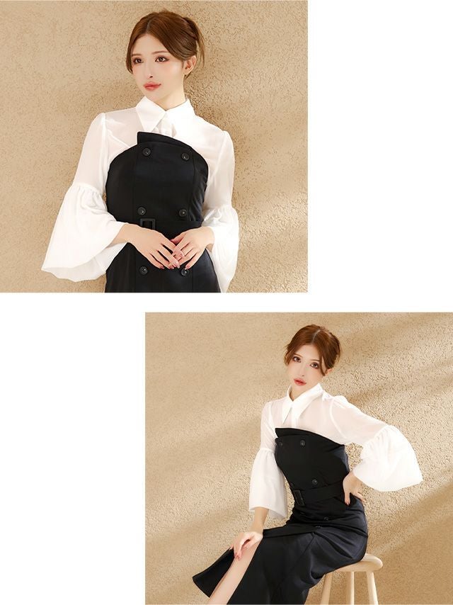 他の画像を見る Lあり!大人COOLな一着♡ 【Anella/アネラ】セットアップ 袖あり 襟付き ブラウス ベアワンピース ベルトデザイン タイト 膝丈ドレス 即日発送 ¥ 17,600 税込 詳細を見る お気に入りに登録する