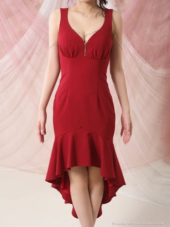 キャバドレス an ジップデザイン ノースリーブ チェーン タック マーメイド ロングテールドレス