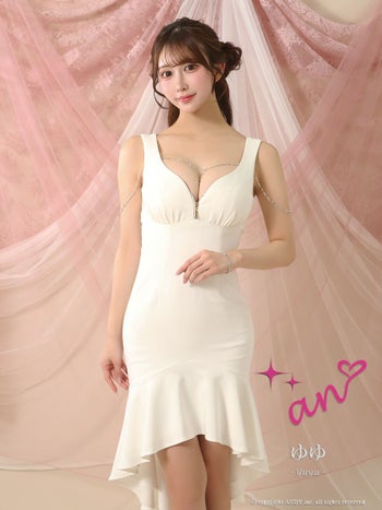 XSあり!セクシーと可愛いの良いとこ取り♪ 【an/アン】ジップデザイン ノースリーブ チェーン タック マーメイド ロングテールドレス(aoc3976)