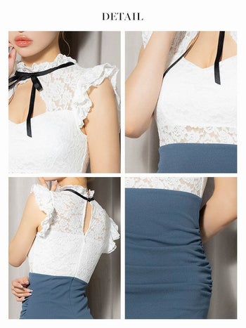 キャバドレス Anella アネラ 半袖 フリルネック バストカット フェミニン リボン タイト 膝丈ドレス