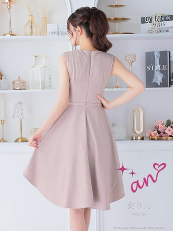 4. 【an/アン】ジップデザイン ノースリーブ ウエストベルト ビジュー フリル ロングテールドレス(aoc4002)
