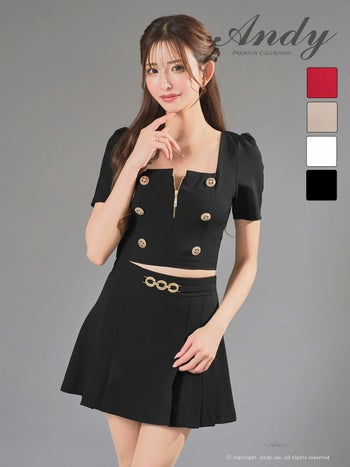 XSあり!ジップデザインでセクシーさをプラス♪ 【Andy/アンディ】セットアップ ジップデザイン 半袖 スクエアネック ボタン プリーツ チェーン フレアミニドレス (anok3018)