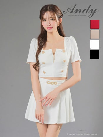 キャバドレス Andy セットアップ ジップデザイン 半袖 スクエアネック ボタン プリーツ チェーン フレアミニドレス