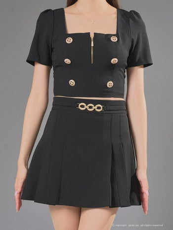 3. 【Andy/アンディ】セットアップ ジップデザイン 半袖 スクエアネック ボタン プリーツ チェーン フレアミニドレス (anok3018)