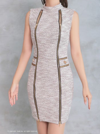 ゴールドジップデザイン ノースリーブ タイトミニドレス