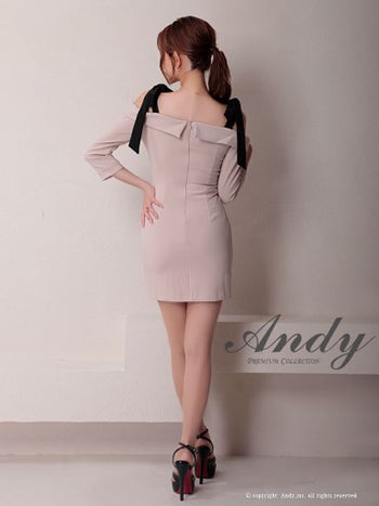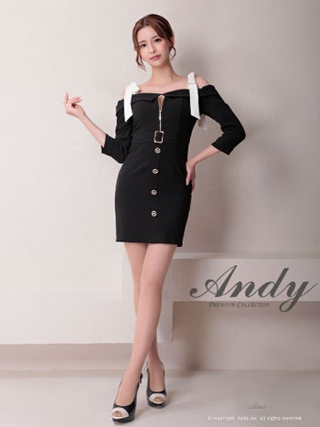 キャバドレス ミニドレス Andy アンディ リボン ベルト ジップデザイン オフショルダー バックル ツートンカラー 袖あり タイトミニドレス