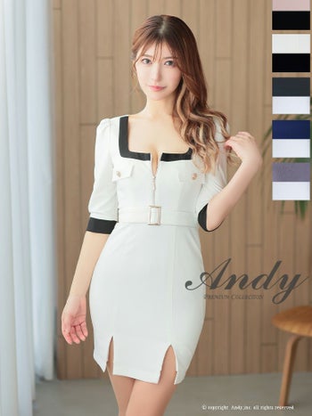 キャバドレス タイトミニドレス Andy アンディ バイカラー スリット ジップデザイン 袖あり 飾りポケット ベルト