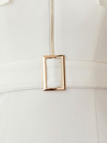 ジップデザイン バイカラー スリット 袖あり 飾りポケット ベルト タイトミニドレスのメイン画像5