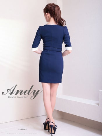 キャバドレス タイトミニドレス Andy アンディ ジップデザイン バイカラー スリット 袖あり 飾りポケット ベルト