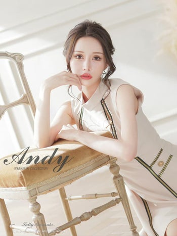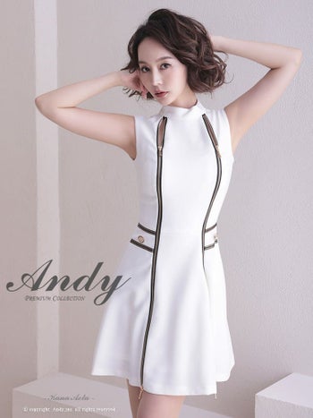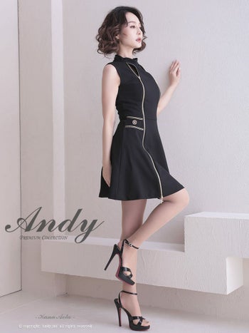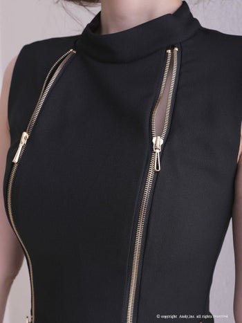 キャバドレス Andy ガーリー ノースリーブ バイカラー ハイネック ダブル ジップデザイン 飾りボタン フレアミニドレス