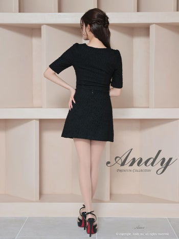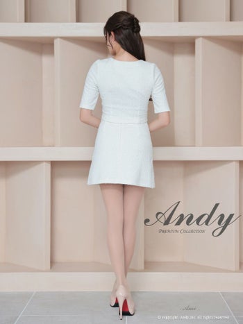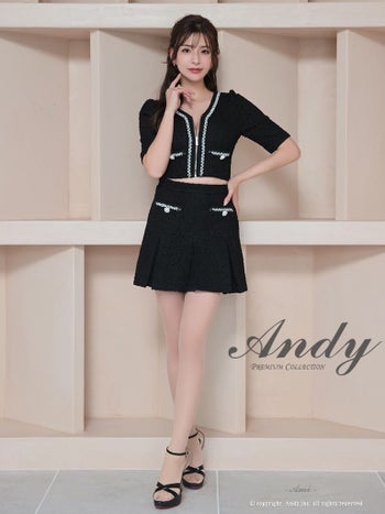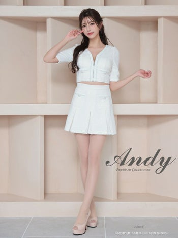 キャバドレス フレアミニドレス Andy アンディ プリーツ ツイード 袖あり ジップデザイン 飾りポケット 飾りボタン セットアップ