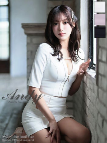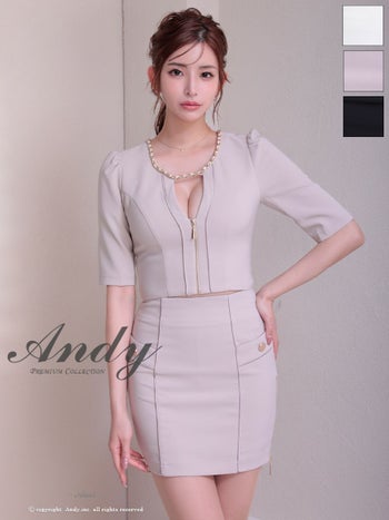 キャバドレス タイトミニドレス Andy アンディ 飾りボタン セットアップ 袖あり ジップデザイン ワンカラー