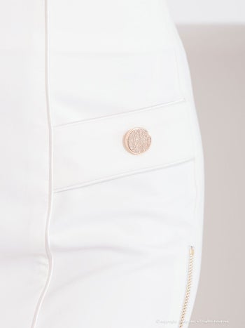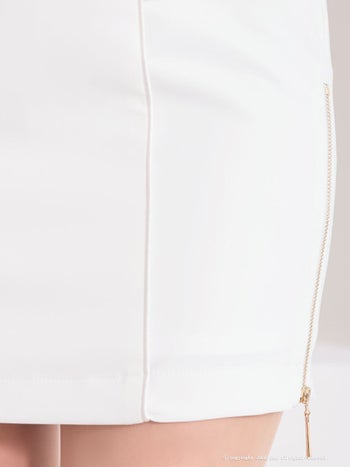 飾りボタン セットアップ 袖あり ジップデザイン ワンカラー タイトミニドレスのメイン画像3