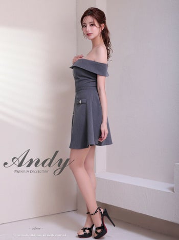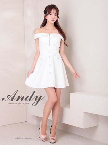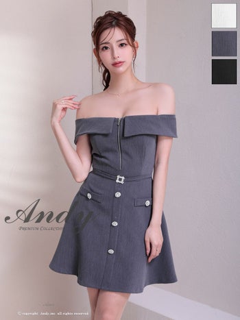 キャバドレス Andy アンディ ベルトデザイン ジップデザイン オフショル 飾りボタン スクエアネック ビジューボタン フレアミニドレス