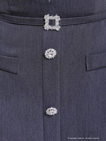 XSあり!ビジューボタンがcute♡ 【Andy/アンディ】ベルトデザイン ジップデザイン オフショル 飾りボタン スクエアネック ビジューボタン フレアミニドレス(anon2931)