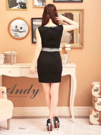 3. 【Andy/アンディ】ノースリーブ ウエストマーク チェーン 飾りボタン ビジューボタン タイトミニドレス(anon2935)