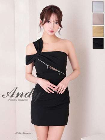キャバドレス Andy アンディ ワンカラー ジップデザイン ワンショルダー アシンメトリー タイトミニドレス