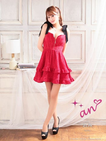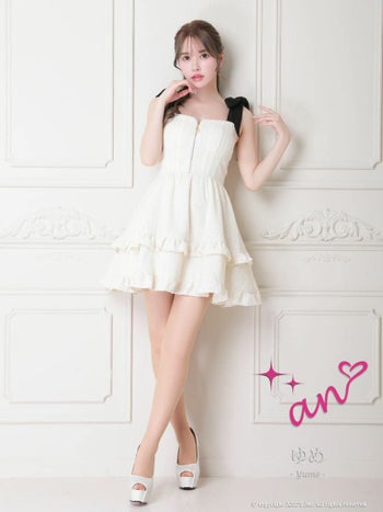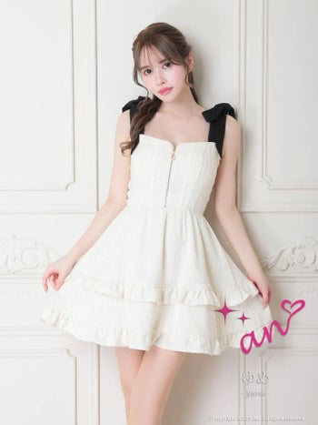 キャバドレス フレアミニドレス an アン ノースリーブ ジップデザイン ガーリー リボン フレアミニドレス