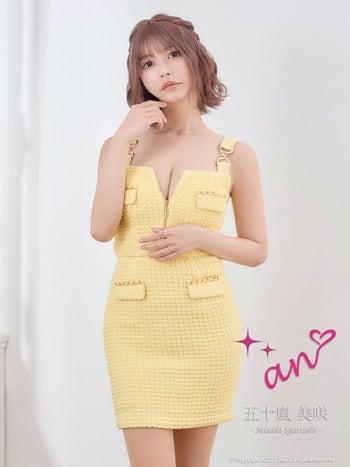 キャバドレス タイトミニドレス an アン 飾りポケット バックル ノースリーブ チェーン ジップデザイン スーパーストレッチツイード リボン