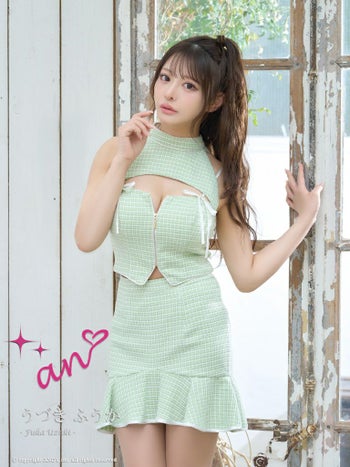 キャバドレス ミニドレス an アン ツイード セットアップ ハイネック ジップデザイン ノースリーブ 裾フリル フレアミニドレス