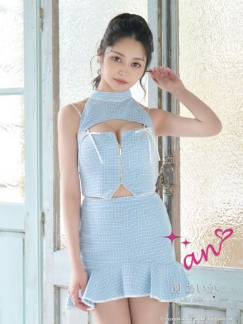 3. 【an/アン】ツイード セットアップ ハイネック ジップデザイン ノースリーブ 裾フリル フレアミニドレス(aoc3657)