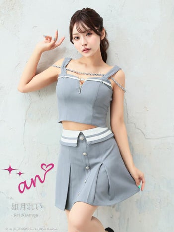 XSあり!デコルテチェーンが目を惹く♪ 【an/アン】デコルテチェーン ジップデザイン ガーリー セットアップ ノースリーブ フレアミニドレス (aoc3683)