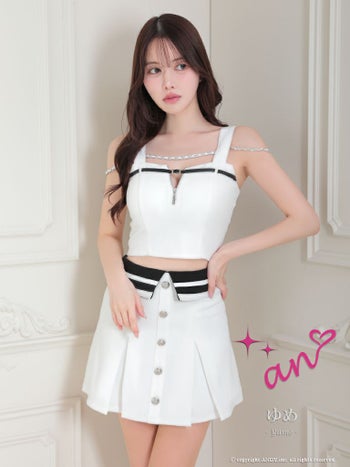 4. 【an/アン】デコルテチェーン ジップデザイン ガーリー セットアップ ノースリーブ フレアミニドレス (aoc3683)