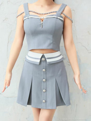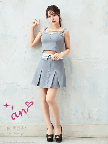 キャバドレス ブランド デコルテチェーン ジップデザイン ガーリー セットアップ ノースリーブ フレアミニドレス