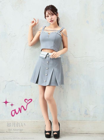 キャバドレス ミニドレス an アン ガーリー デコルテチェーン ジップデザイン セットアップ  ノースリーブ フレアミニドレス