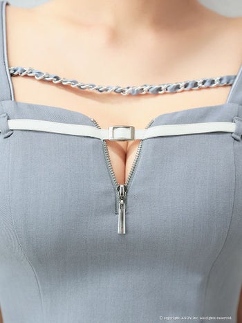 3. 【an/アン】ガーリー デコルテチェーン ジップデザイン セットアップ ノースリーブ フレアミニドレス(aoc3683)
