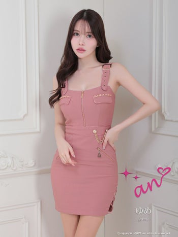 3. 【an/アン】ノースリーブ ハイウエスト セクシー ポケット ジップデザイン タイトミニドレス(aoc3684)