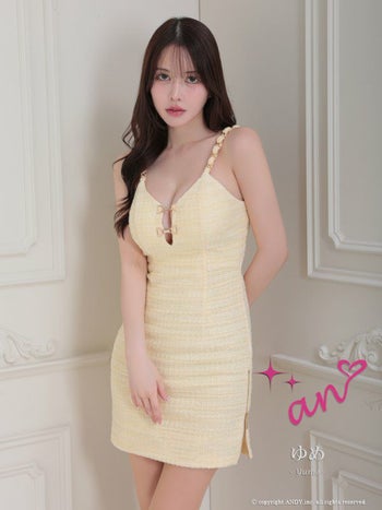キャバドレス ミニドレス an アン ツイード スリット ジップデザイン チェーン バックル リボン ノースリーブ  タイトミニドレス