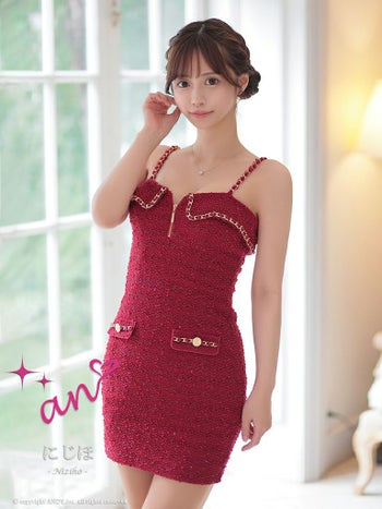 キャバドレス ミニドレス an アン ストレッチ チェーン ジップデザイン 飾りポケット リボン キャミソール タイトミニドレス