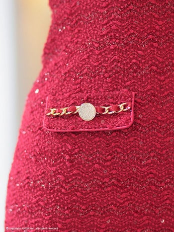 ストレッチ チェーン ジップデザイン 飾りポケット リボン キャミソール タイトミニドレスのメイン画像8