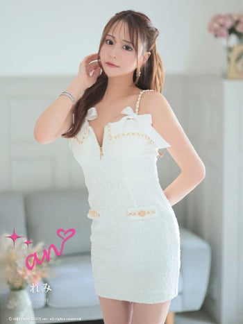 キャバドレス ミニドレス an アン チェーン ストレッチ ジップデザイン 飾りポケット リボン キャミソール タイトミニドレス