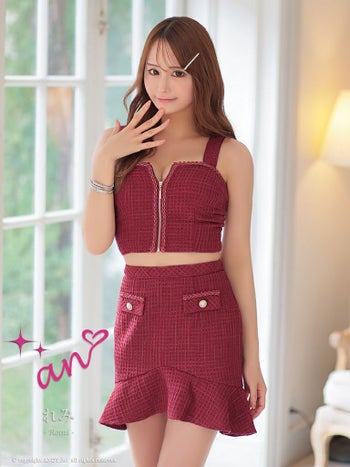 キャバドレス ミニドレス an アン ツイード ジップデザイン 裾フリル セットアップ ノースリーブ 飾りポケット フレアミニドレス