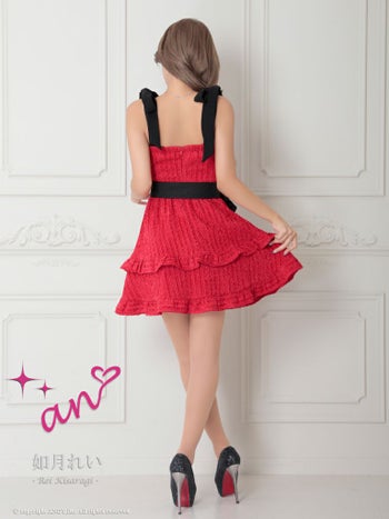 キャバドレス ミニドレス an アン リボンベルト フリル ジップデザイン ツートンカラー ラメ キャミソール フレアミニドレス