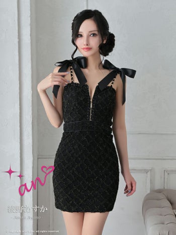キャバドレス タイトミニドレス an アン ジップデザイン リボン チェーン キャミソール