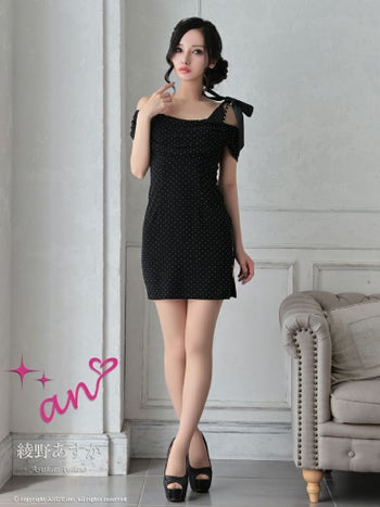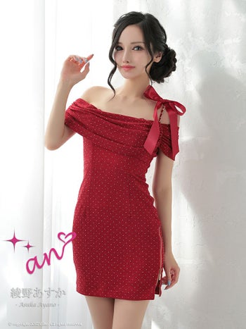 キャバドレス タイトミニドレス an アン リボン ジップデザイン チェーン オフショルダー