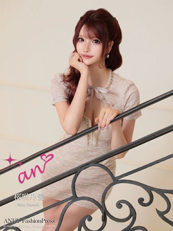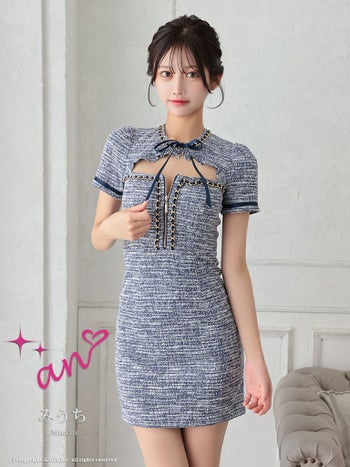 キャバドレス ミニドレス an アン ツイード リボン ジップデザイン チェーン カットアウト 半袖 タイトミニドレス