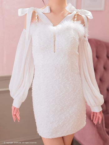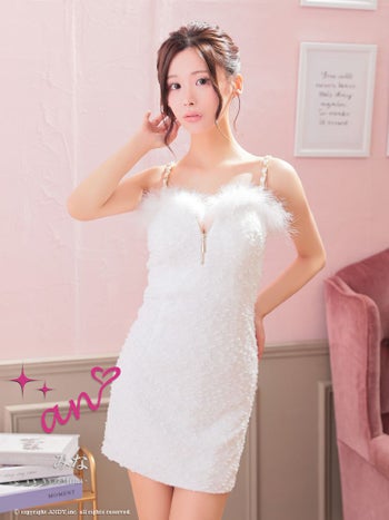 キャバドレス ミニドレス an アン ジップデザイン ファー チェーン リボン 長袖 キャミソール タイトミニドレス
